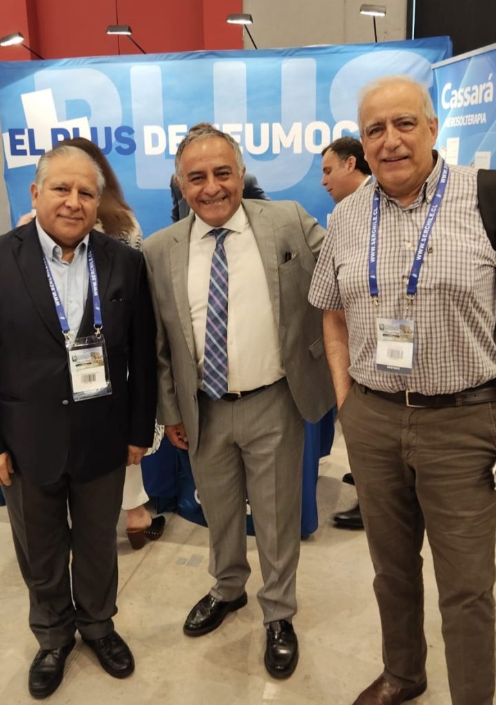 Foto izquierda – derecha: Dr. Luis Soto Germani, médico Broncopulmonar de La Serena, Luis Sánchez, Product Manager División Cassará Resp. y el Dr. Francisco Arancibia, médico Broncopulmonar, jefe del servicio de medicina del Hospital del Tórax de Santiago y ex presidente de la Sociedad de Enfermedades respiratorias-SER-